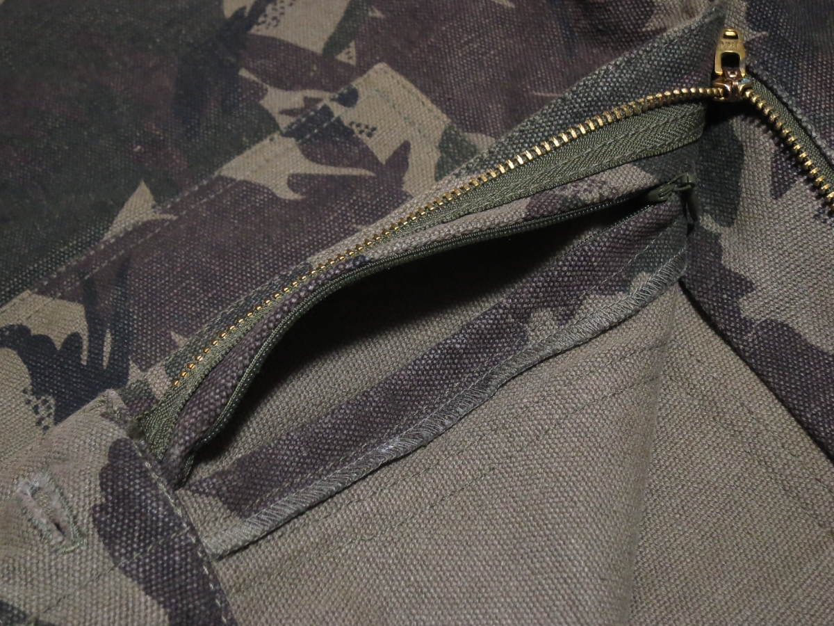 ・状態は裾のスレと色落ち、裾上のスレと色落ち、生地の厚くなった部分のスレと色落ち、生地のスレと色落ち、隠しポケットの生地のくすみ、生地の薄汚れなど使用感ございますが古着慣れされた方でしたら問題なく着用していただけると思います