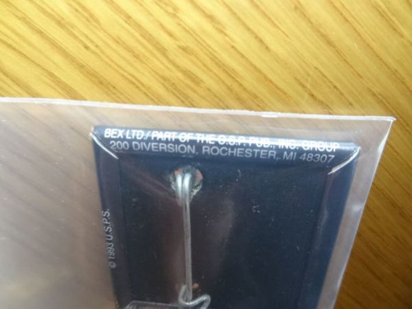 90年代初期に、原宿のエルヴィス専門店「LOVE ME TENDER」にて購入のブリキバッジ。