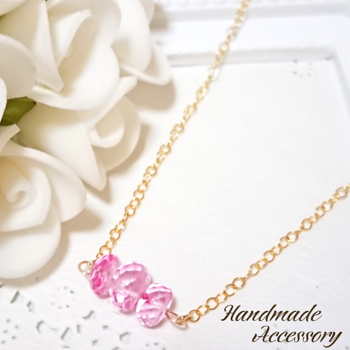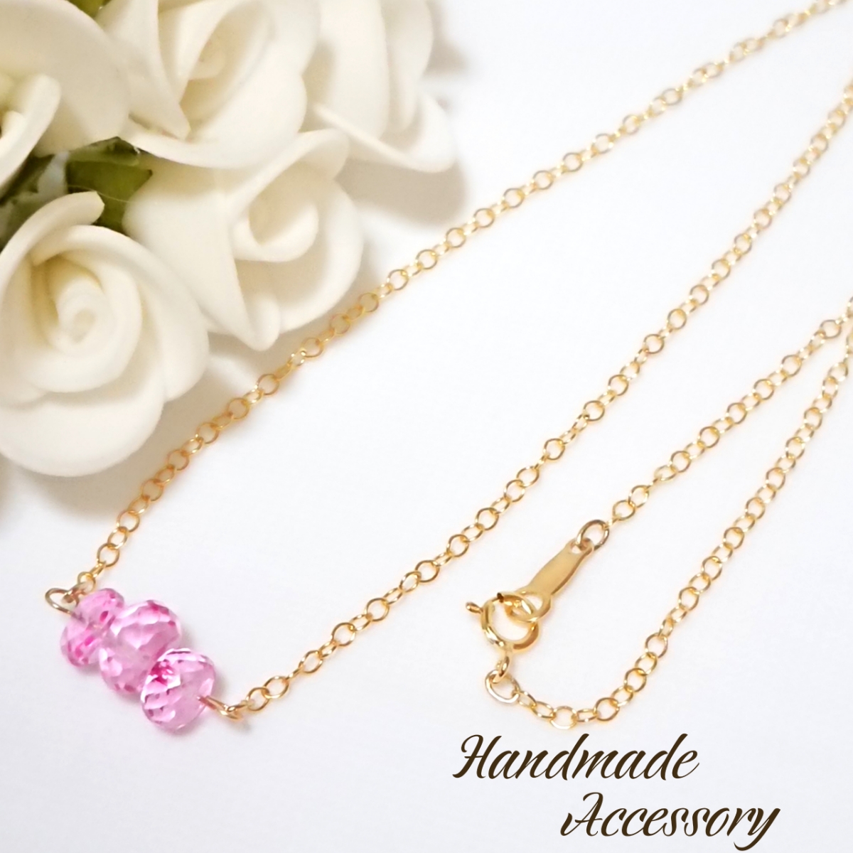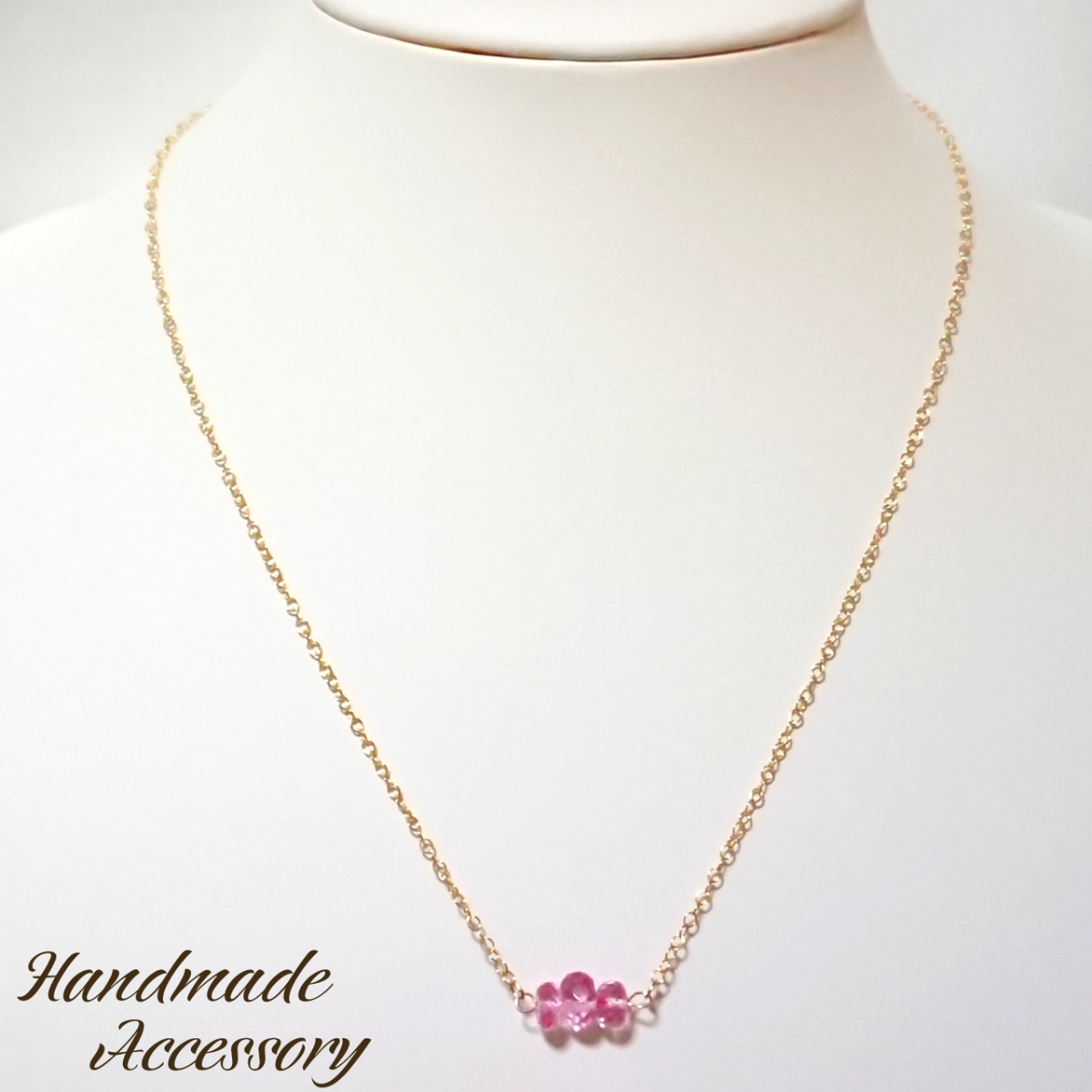 ピンクトパーズのボタンカットを3粒のみフロント部分にあしらったシンプルなネックレスです。