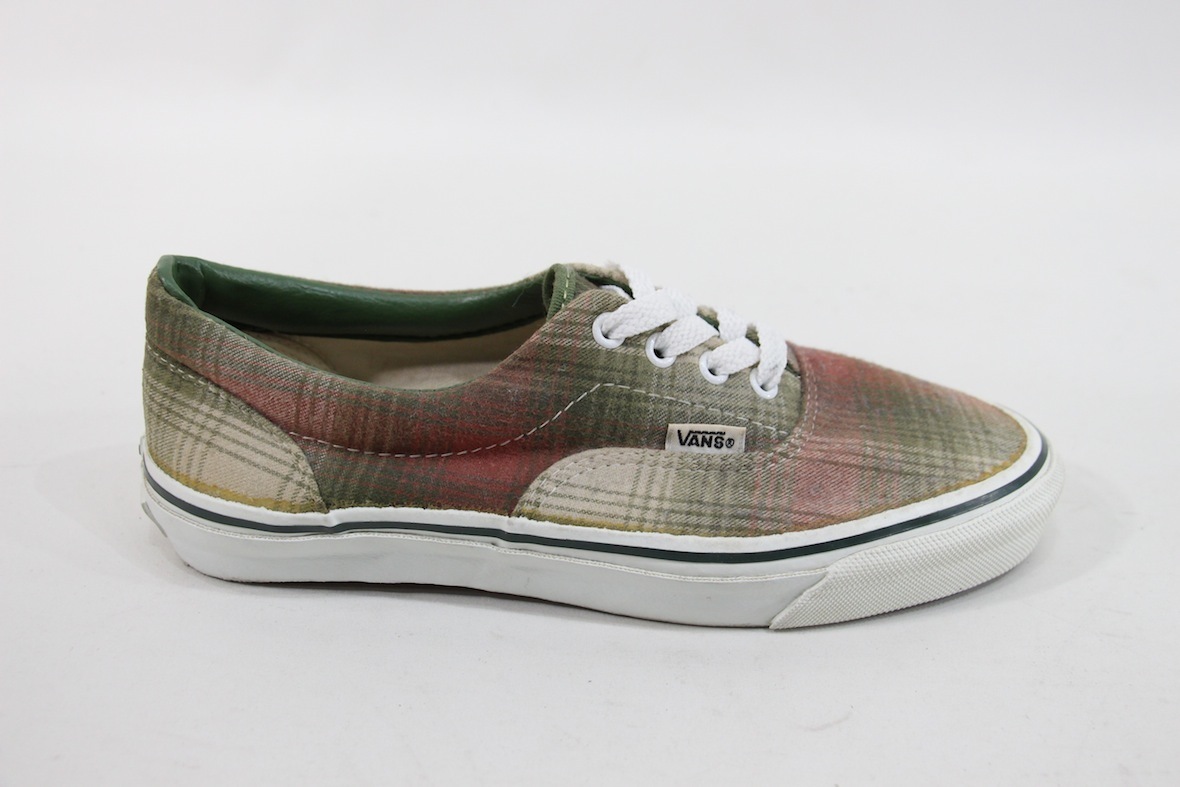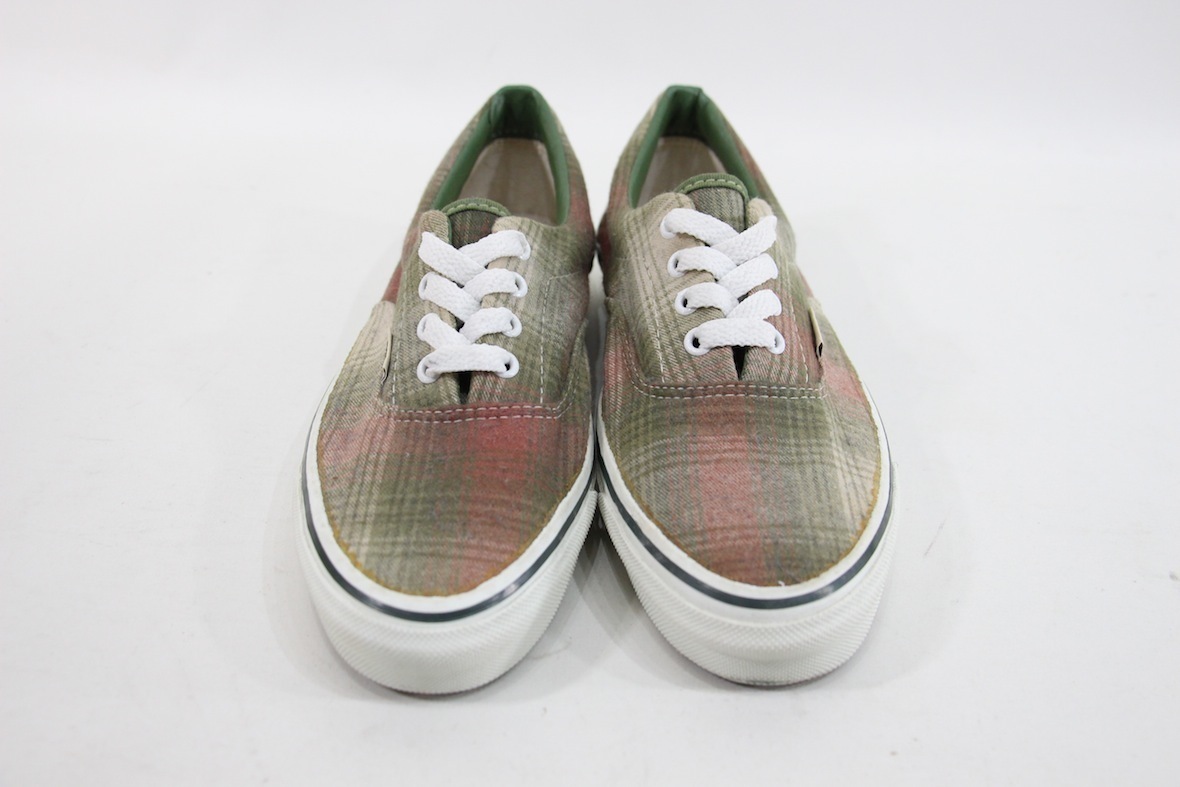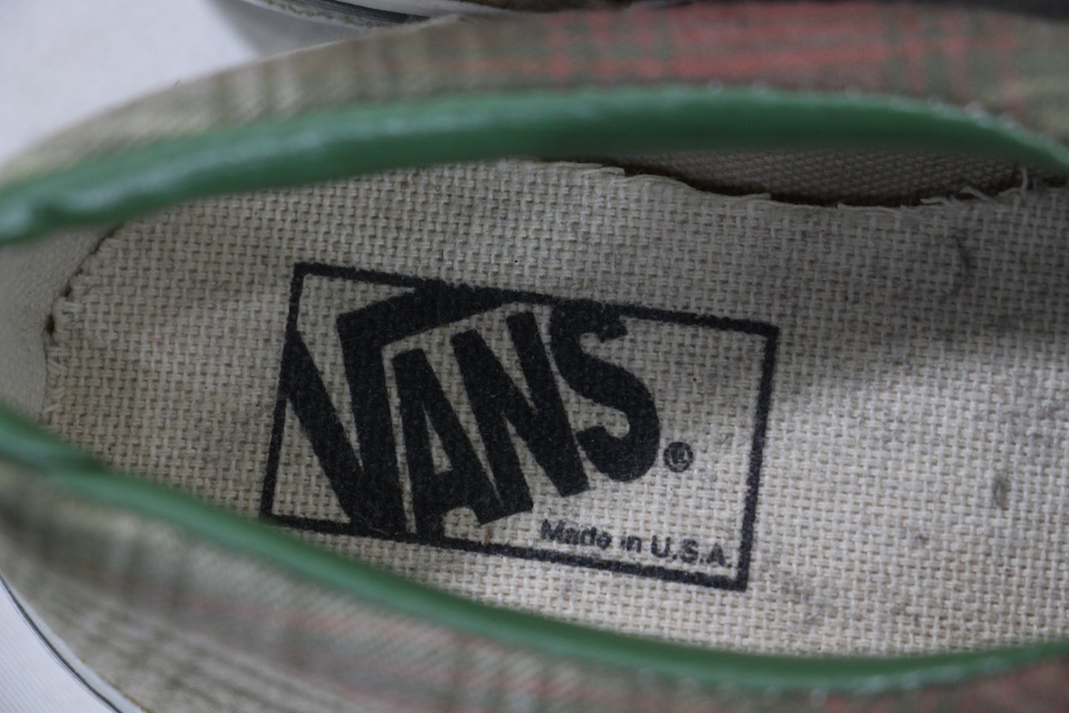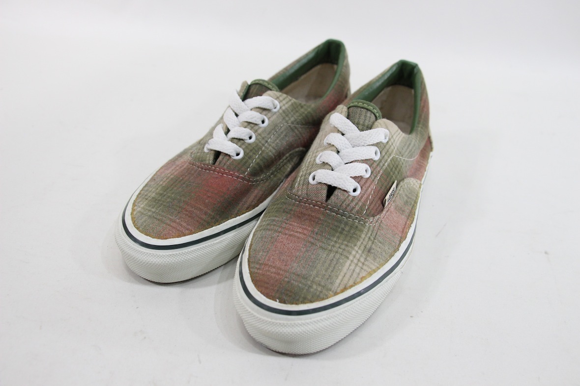 【デッドストック】USA製 90's ビンテージ VANS スニーカー ERA LOW US6 24cm チェック柄 カーキ/オレンジ/ベージュ