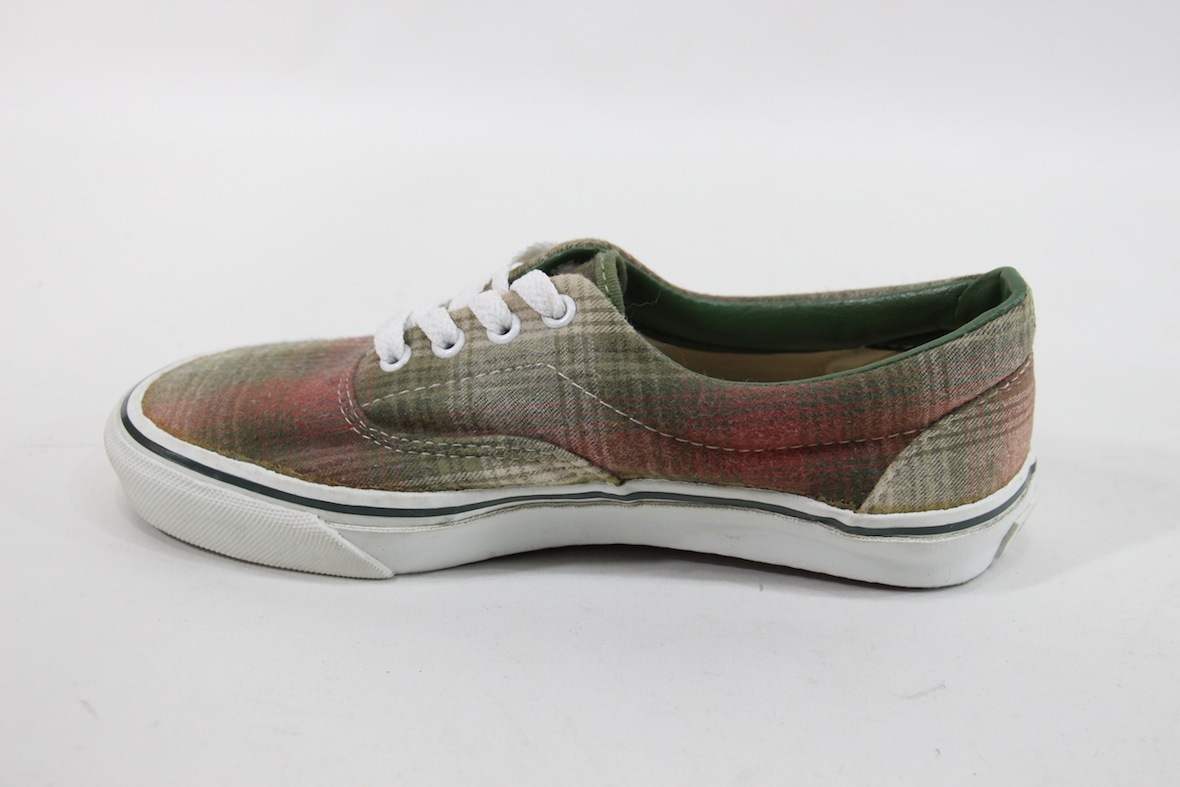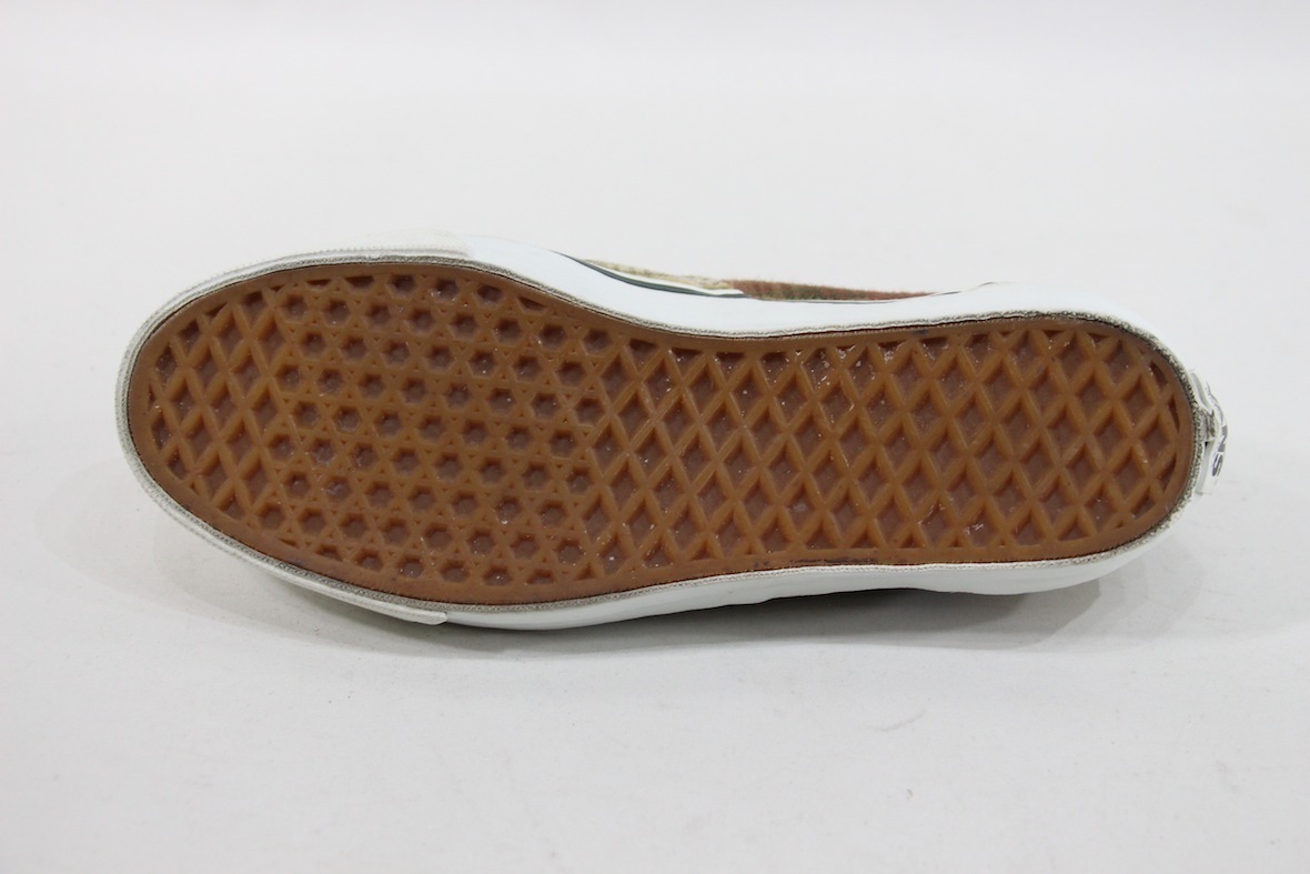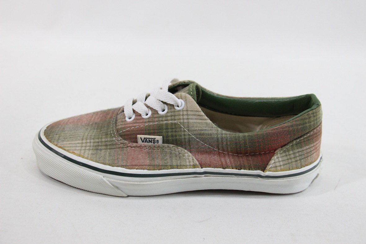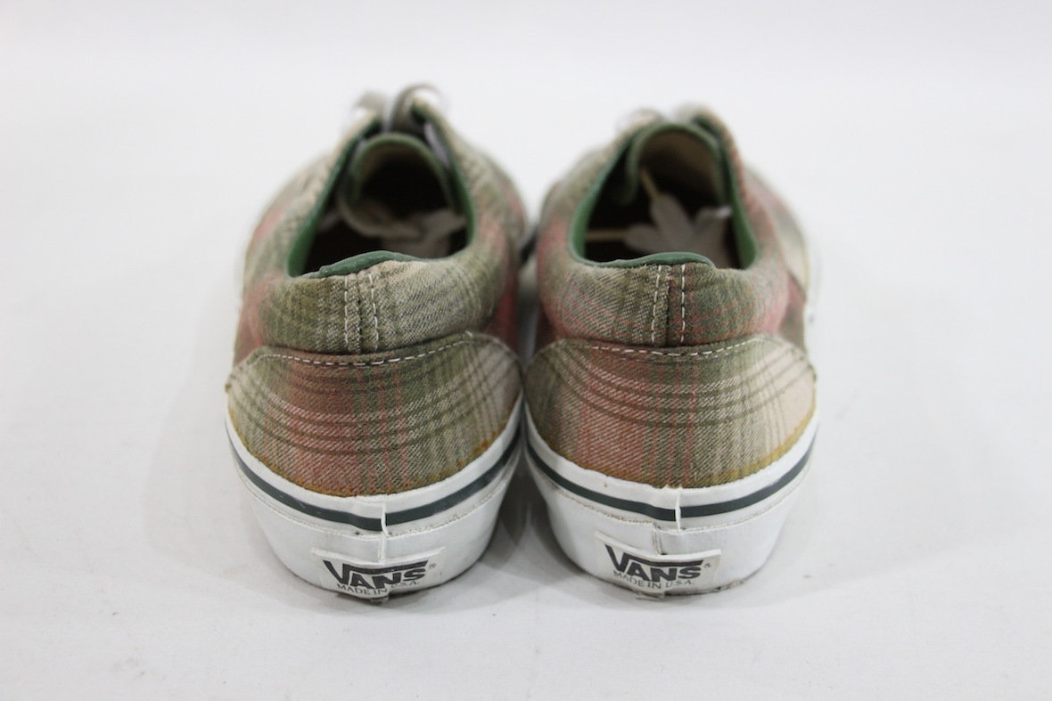 【デッドストック】USA製 90's ビンテージ VANS スニーカー ERA LOW US6 24cm チェック柄 カーキ/オレンジ/ベージュ
