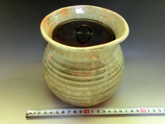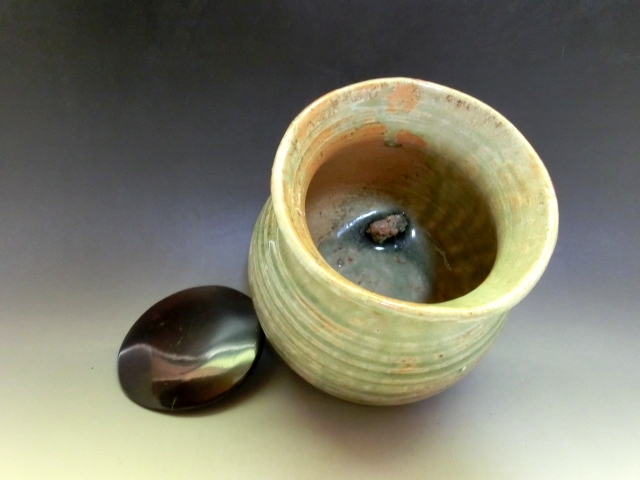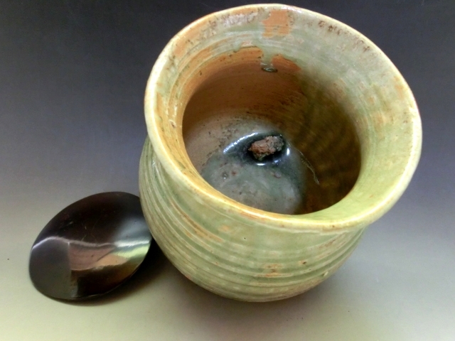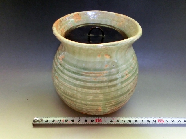 水指■伊賀焼き 袋形水さし 漆器の蓋 お茶道具 古美術 時代物 骨董品■