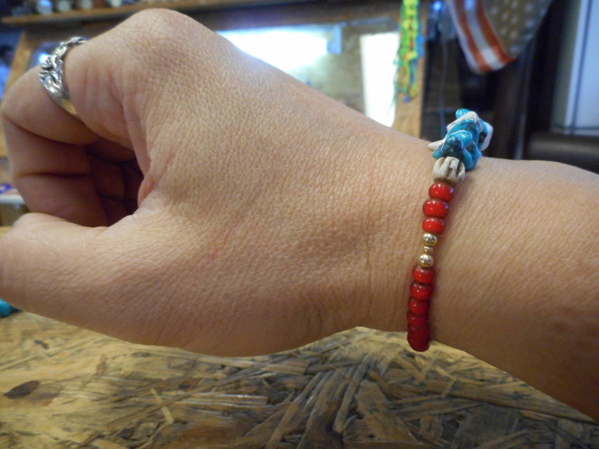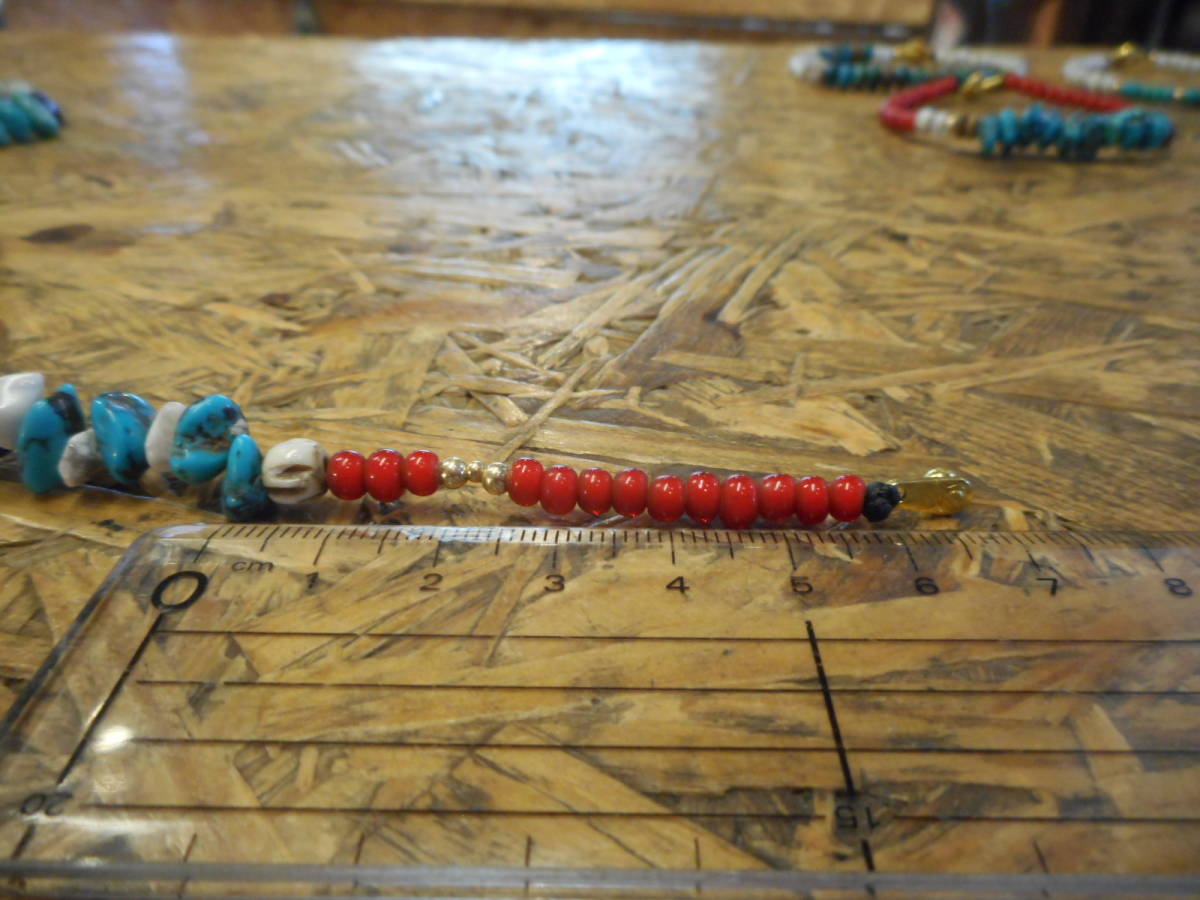 赤ビーズ.白.ホワイトハーツ☆天然ターコイズ☆ブレスレット☆ブレス☆インディアン☆ネイティブ系☆14金GFビーズ☆オリジナル お洒落☆