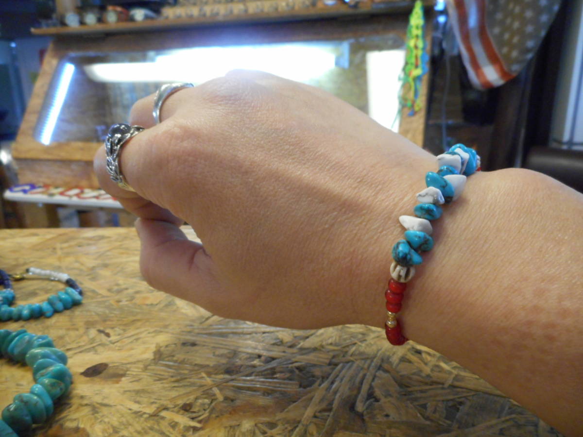 綺麗な天然ターコイズとやっと手に入れた白のホワイトハーツでブレスにしました。