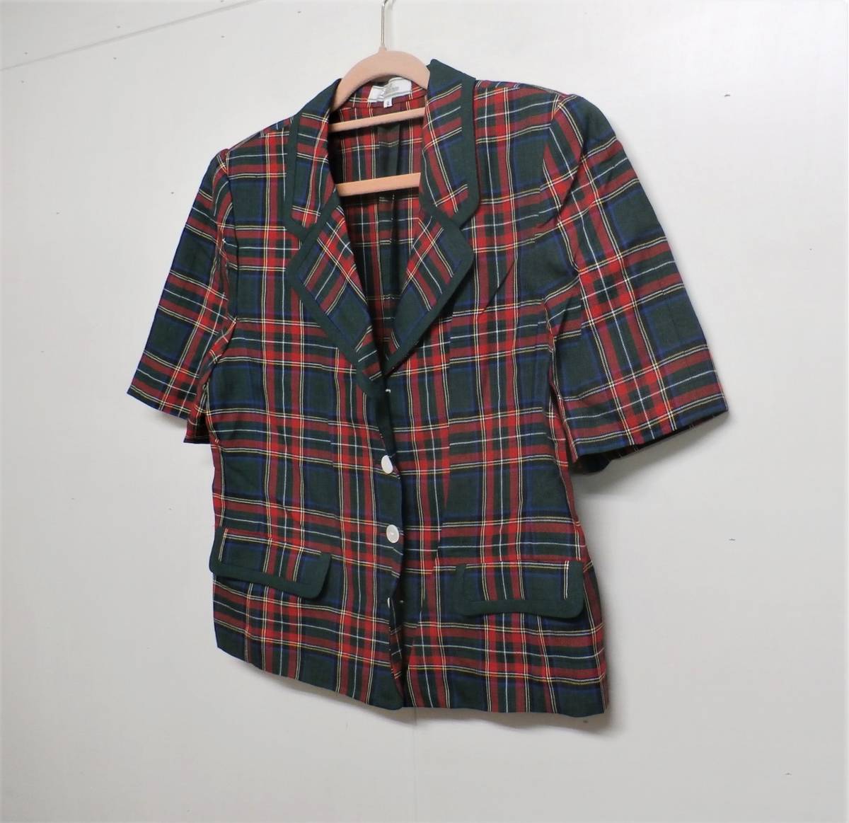 [14915]  【レリアン】 サイズ9 / チェック柄 / 麻混 / ジャケット  / 日本製