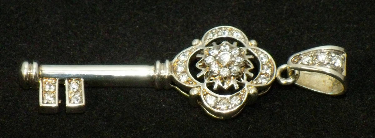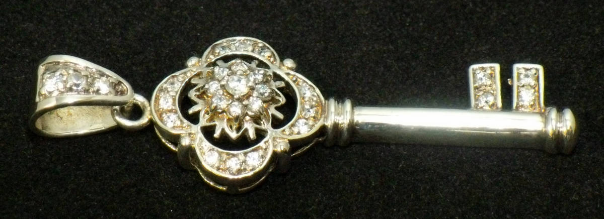 商品名 | SILVER925 豪華 KEY(鍵) ジルコン入 ペンダントトップ 15.9g 未使用長期保管品/チカーノ |