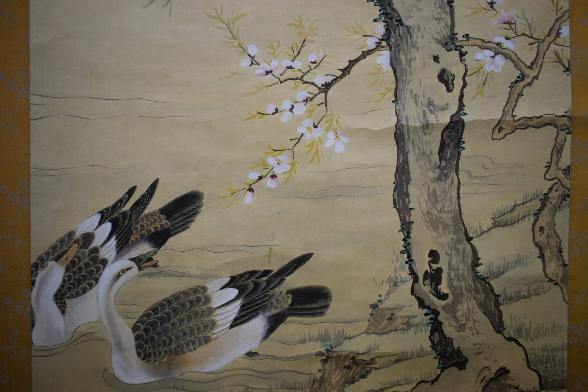 【真作】/櫻峯/花鳥図 ≪参考≫ 櫻峯 花鳥図 ≪作品状態≫ 本紙は絹本肉筆です。 本紙は薄汚れ・多少の巻シワがあります。 表装は天地に多数の汚シミがあります。 紙箱付 軸丈 縦 190㎝×幅 76㎝ 写真で状態をご判断の上、宜しくお願い致します。 |