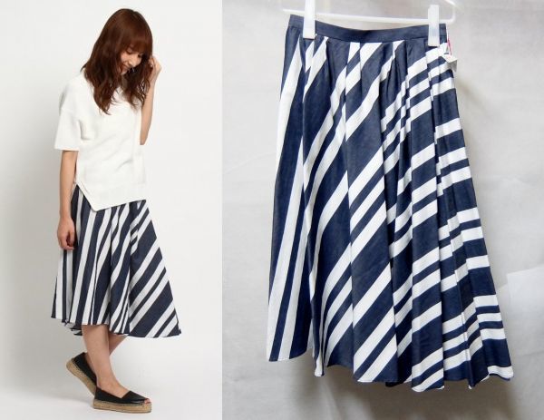 <商品名> ドレステリア バイヤス ストライプ ランダム フレア スカート36 <サイズ> 36 <詳しい寸法> 全長76ウエスト63(単位:㎝) ぐらいです。 <商品状態> 未使用でタグ付きですが、個人保管のため細かいスレ細かい薄い汚れがある場合がございますので展示品程度とお考えください。 <商品説明> 定価32000円+税