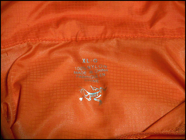ブランドは「ARC’TERYX(アークテリックス)」、生産国はMade in China(チャイナ製)になります。