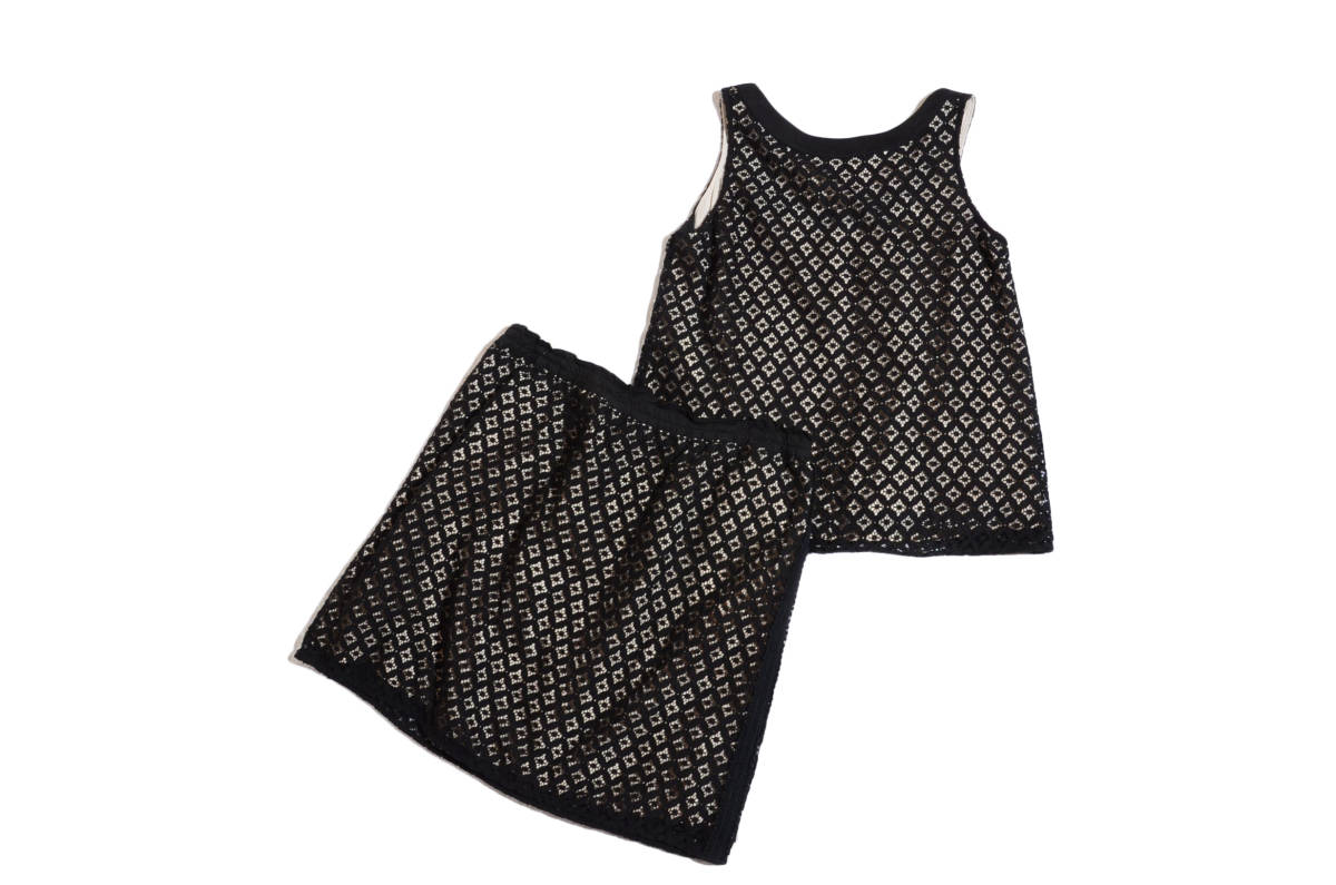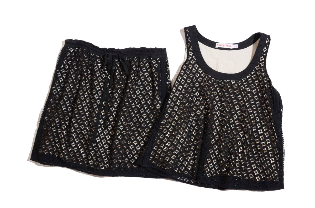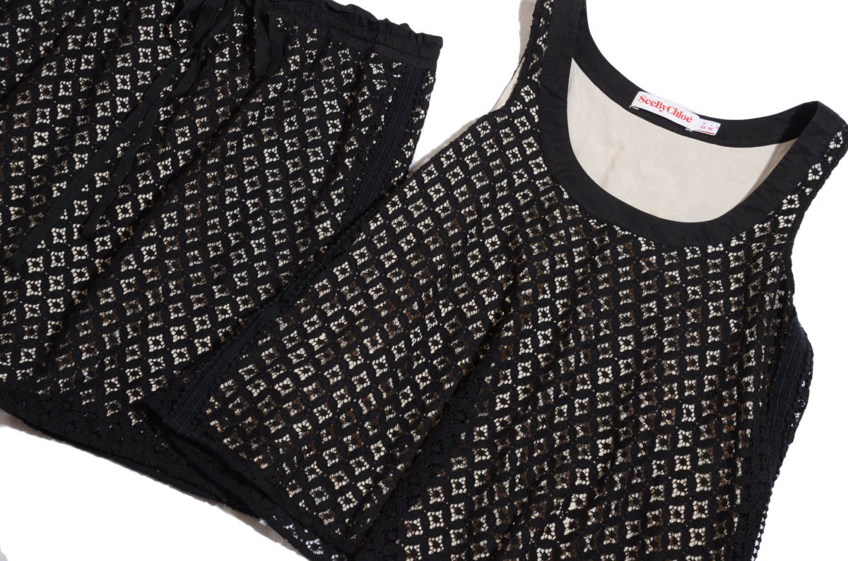 かわいい。シーバイクロエ 黒レースセットアップ ノースリーブブラウス&スカート S~M
