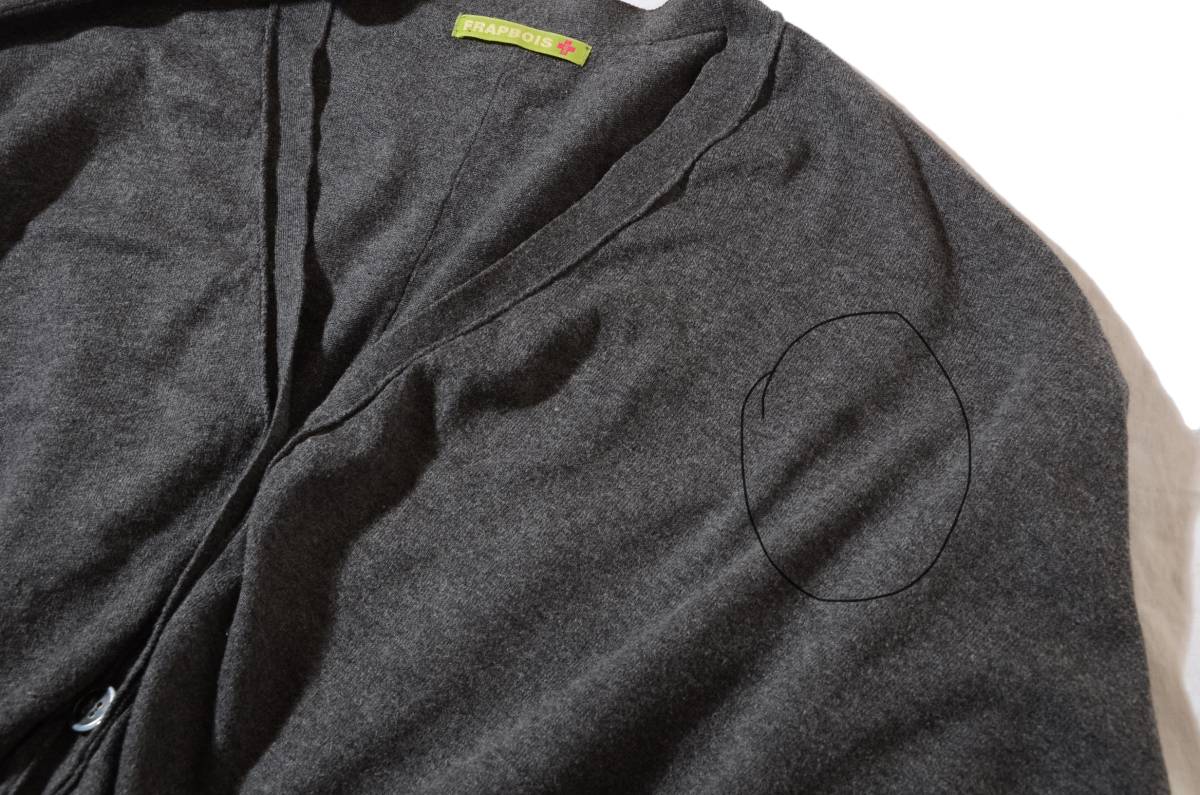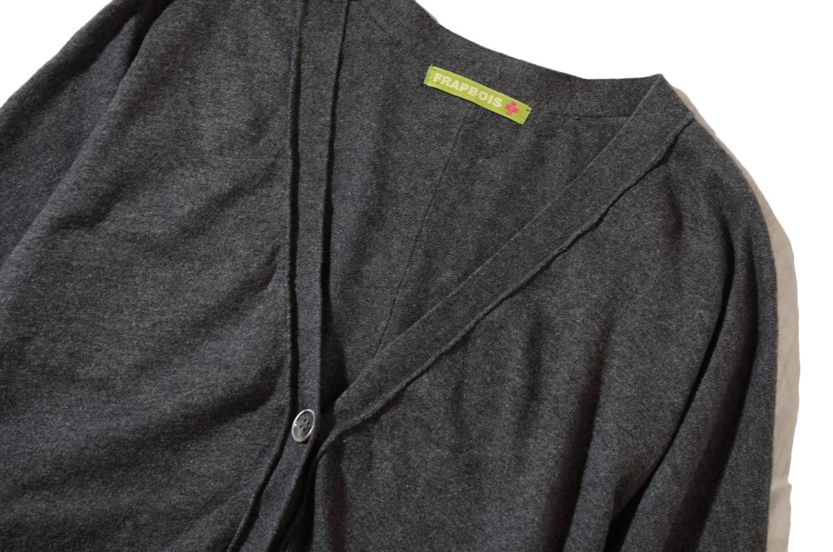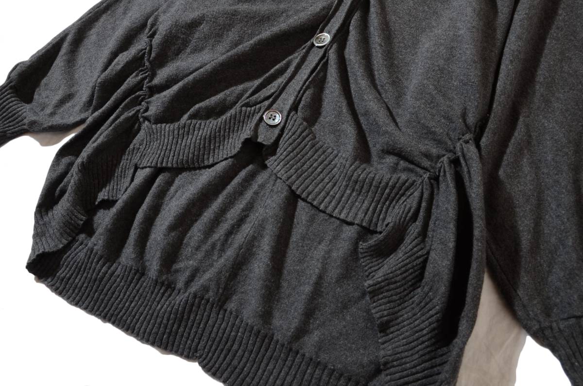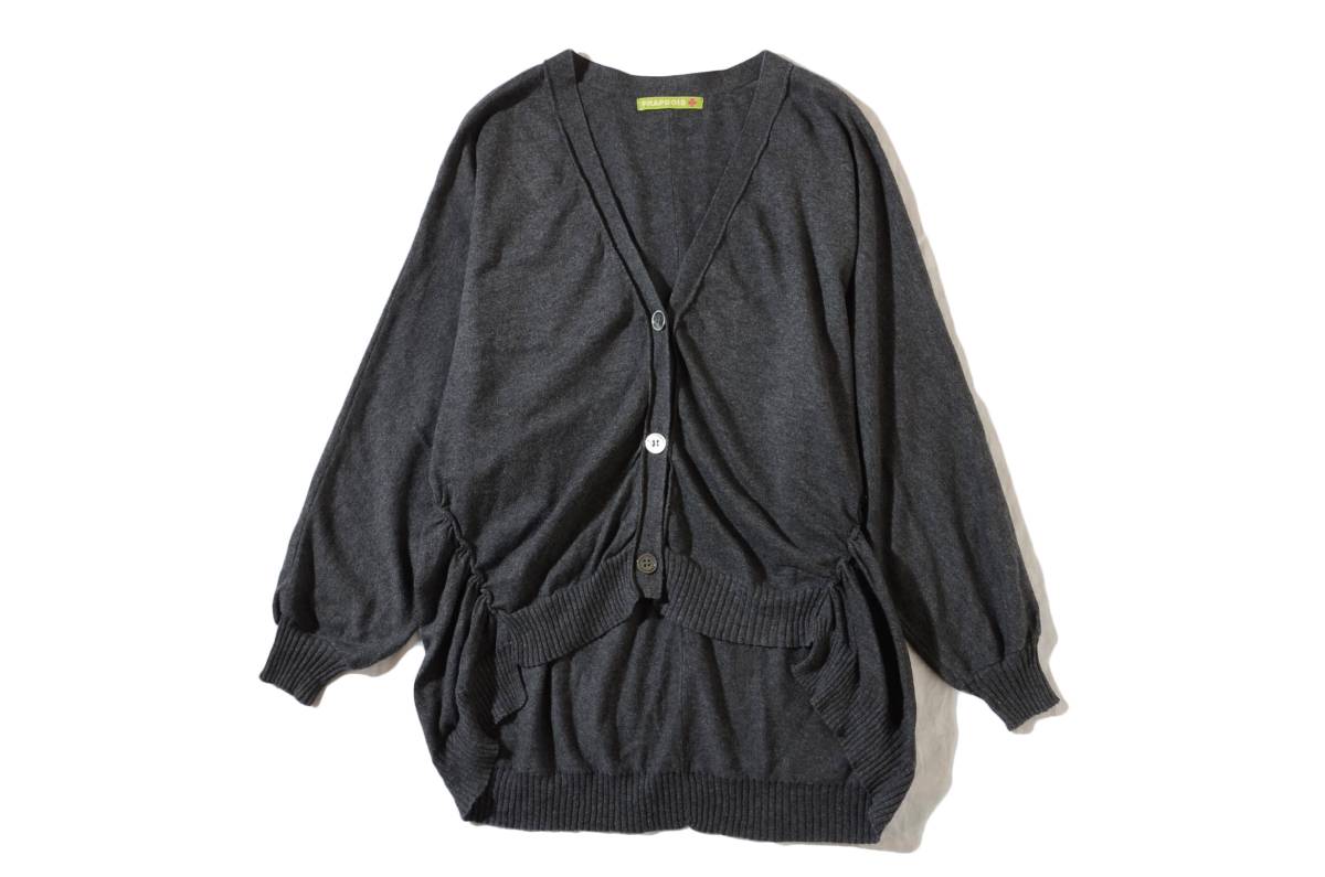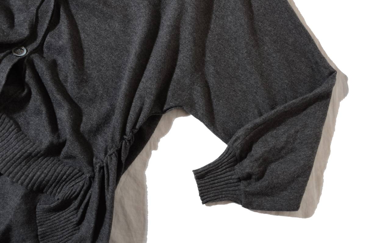 まあまあ美品。フラボアFRAPBOIS シャーリングギャザー変形ドルマンデザイン 薄手コットンニットカーディガン グレー