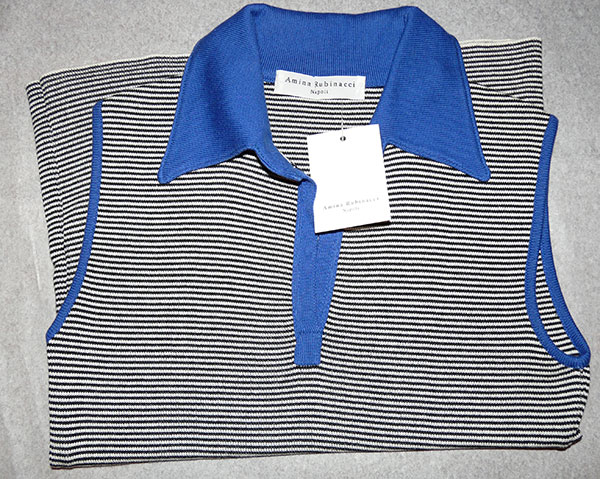 AMINAR RBINACCI ピンストライプノースリーブニットwht x bk 44