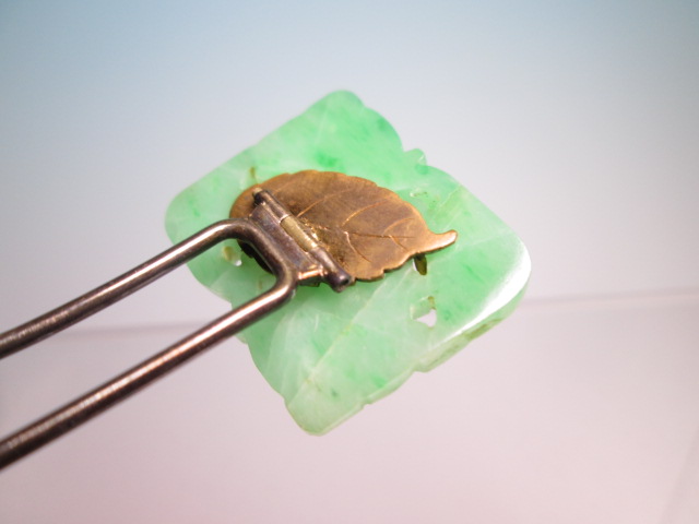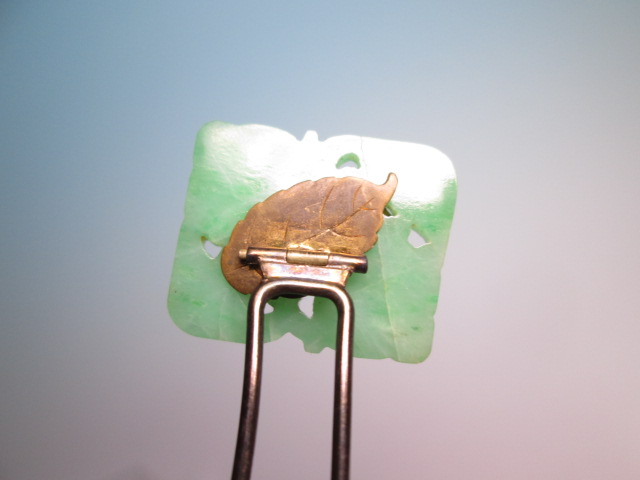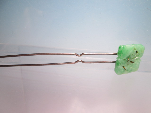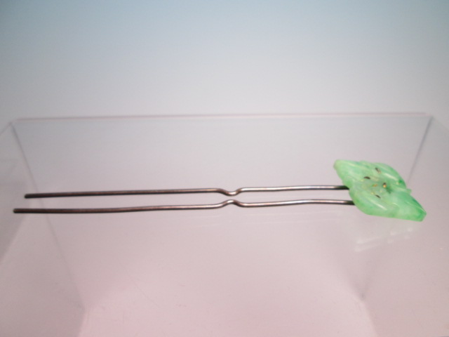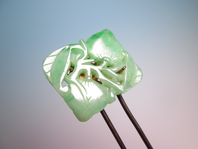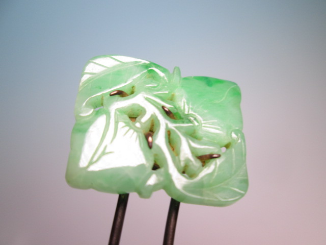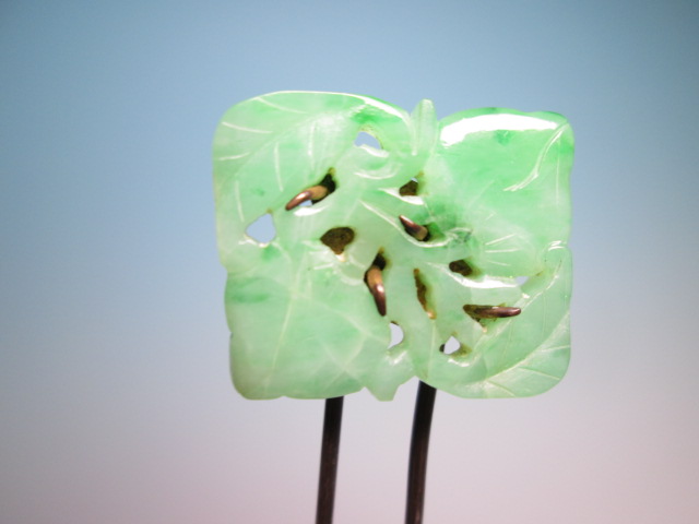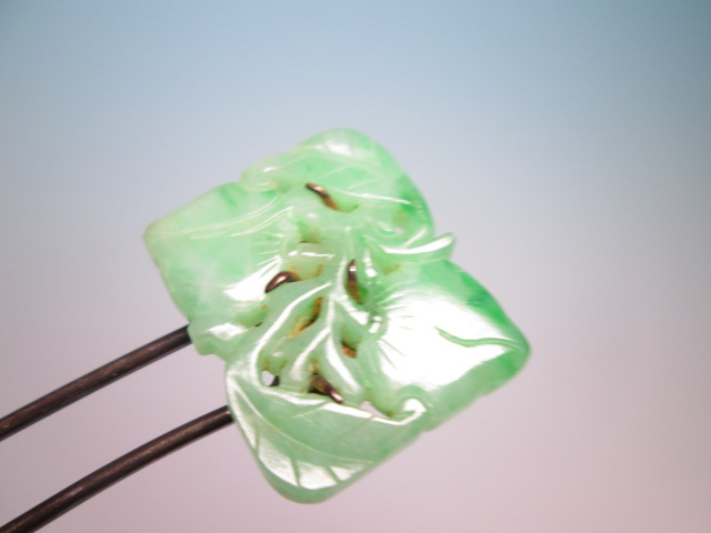 ☆アンティーク・本翡翠 葉と実透かし彫刻のかんざし 8,27g