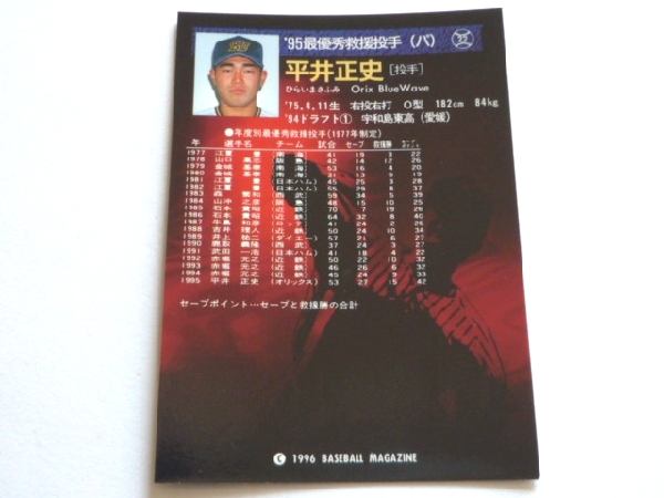 | ***□ I◆【BBM1996 野球カード】’95 42SP 最優秀救援投手/オリックス★平井正史 □*** |