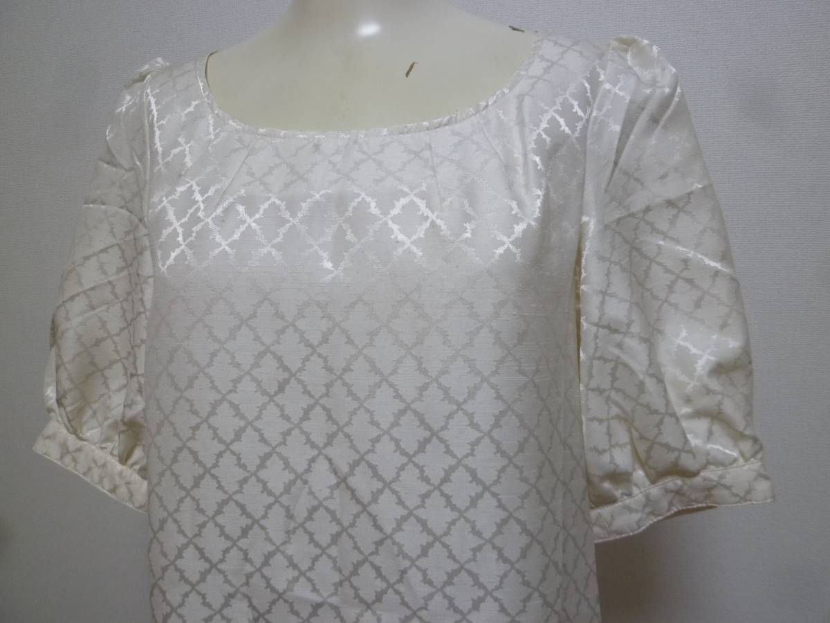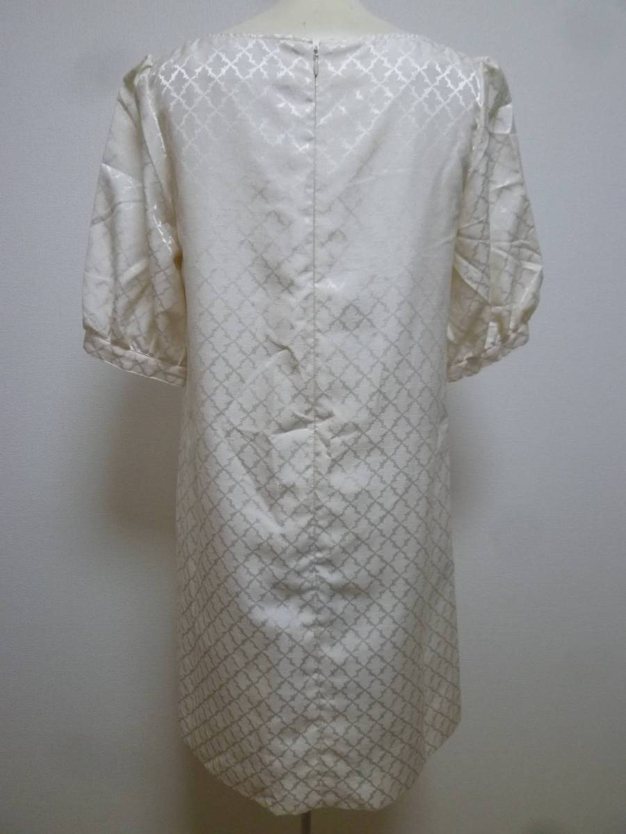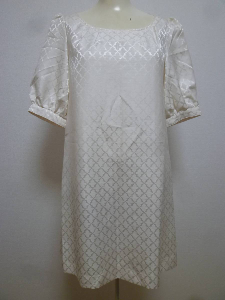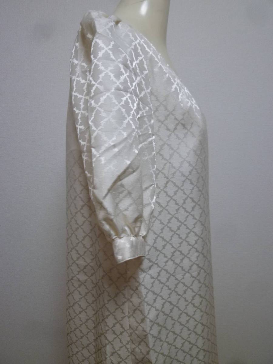 SRIC♪光沢アイボリー総柄ワンピース38/メイトンフォーマル結婚式にも♪215