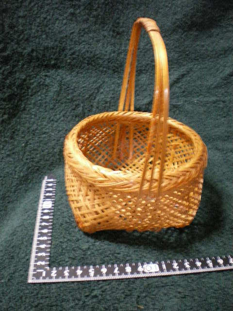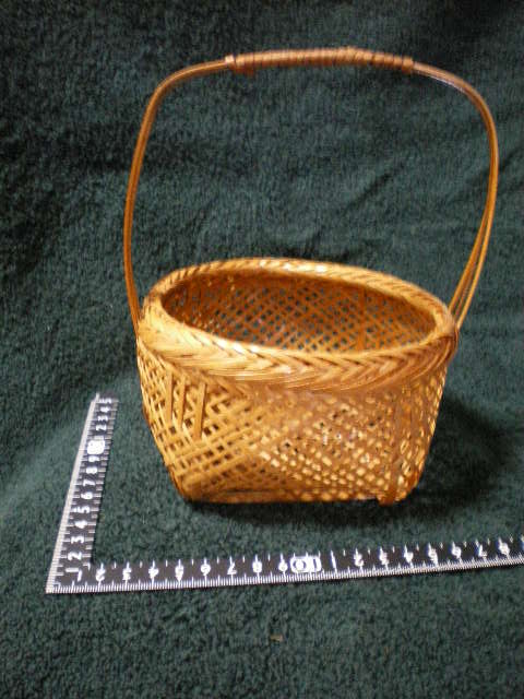 珍品フリマ・竹・籐] 竹製 柄付き カゴ 物入れ お茶 花かご 大きさ:カゴ直径 12.5cm カゴ高さ 7.5cm 全高 19cm [送料無料]