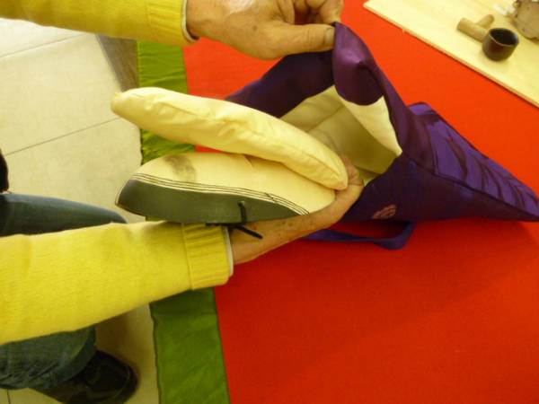 片面は金襴緞子織の生地です、片面は柔らかな絹交の 無地です。