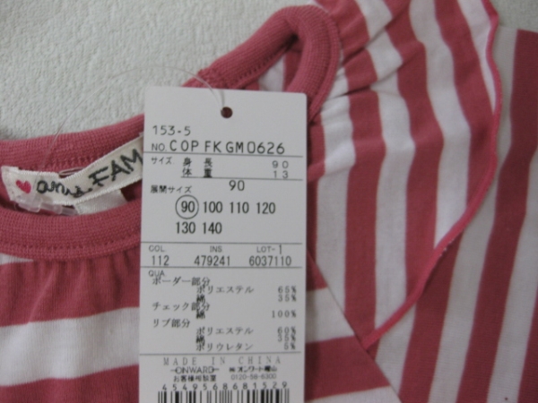 ウエストのミニリボンと、袖のフリルがポイントです。胴部分と袖部分でピッチの異なるボーダーを使用しているので、一層おしゃれな雰囲気に仕上がっています。ふんわりとした可愛らしいシルエットは、夏に軽やかな印象を与えます。