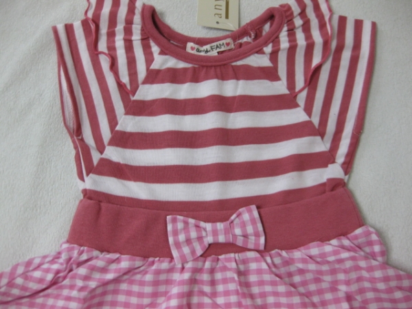天竺先染めボーダー+ギンガムチェック ワンピース