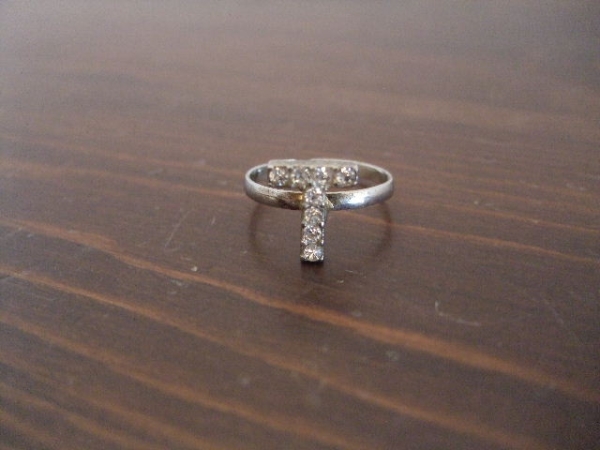 商品名 | ラインストーン入りアルファベットTイニシャルリング(USED)72315 |