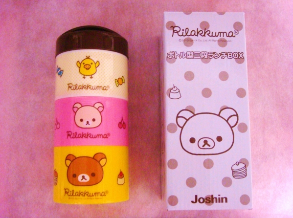 リラックマ ボトル型 三段 ランチボックス 弁当箱 スプーン付き キャラクター グッズ 非売品 ホワイト ピンク 黄色 容器