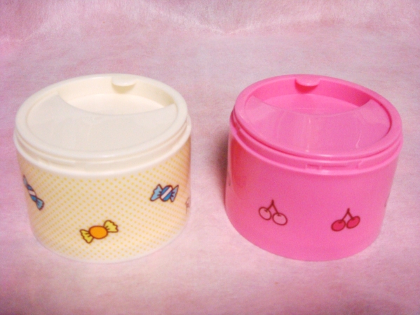 内径:約7cm  内側容器の深さ:約4,3cm(白・ピンク) 約5,7cm(黄色)  全長:約19cm