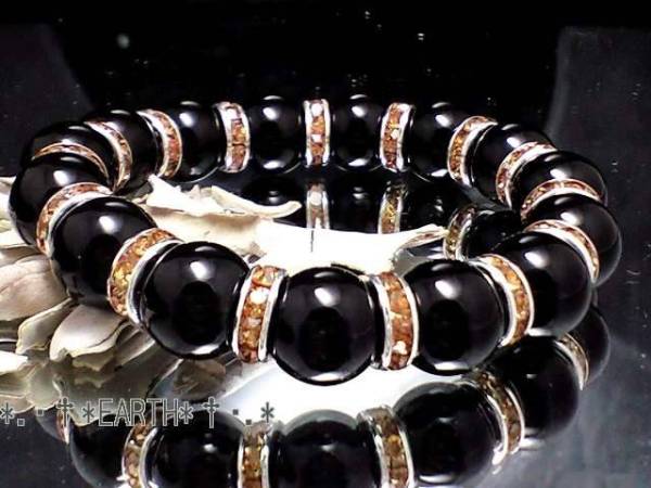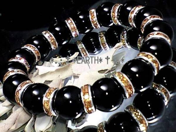 | 黒瑪瑙オニキス&黄金色銀ロンデル10ミリ高級天然石#数珠 | |