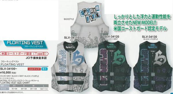 SPYDERFLEX スパイダーフレックス 【COAST GUARD VEST】 GREY グレイ/青 US-XS(76-84cm) 新品正規品 ライフジャケット