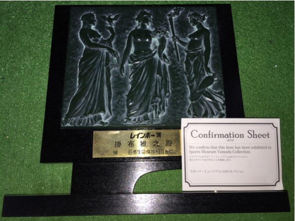 阪神タイガースの掛布雅之選手へ贈呈されたレインボー賞盾です。36センチ×10センチ、高さ35センチ。掛布氏から某ミュージアムへ寄贈され展示されていました。某ミュージアムの確認書付きです。