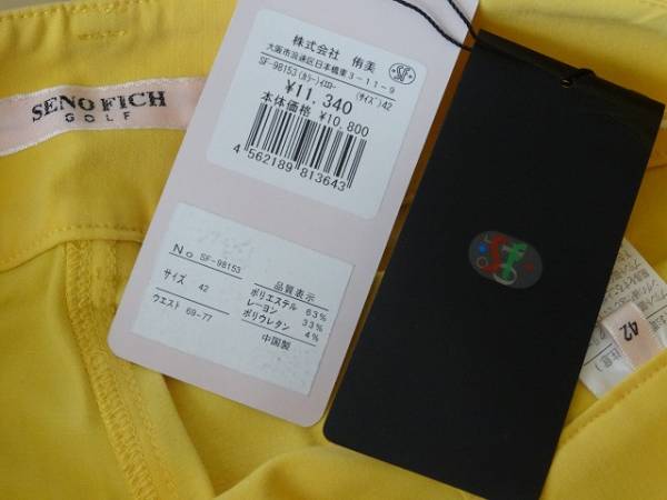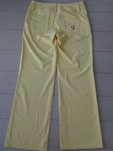 | 新品未使用のSENO FICH GOLFのレディースパンツです。 伸縮性があり、しっかりした厚みのある柔らかい素材の生地です。 とてもきれいな黄色で前ボタン&ファスナー開閉でベルト通し付 左足側面&右後ろポケットにロゴプリントがあり、おしゃれなボトムです。 ポケットは前4ヶ所、後2ヶ所で合わせて6ヶ所あるので便利です。 サイズ 42 ※平置き実寸 ★ウエスト 約39cm (69~77) ★総丈 100cm ★また上 24cm ★わたり幅 26cm ★すそ幅 25cm | |