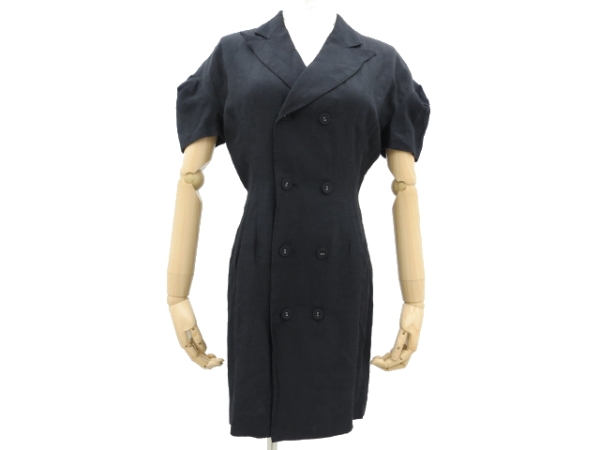 ブラック 半袖のダブルワンピース(フロントボタン)です。