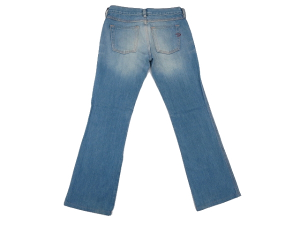 中古の商品は特に、洗濯等で縮みが出ている事が、多いですので、ウエストの両端に指を入れて、少し引っ張った状態で、ウエストをピンと伸ばして、採寸しています。ストレッチ素材のように、伸びる素材は、あまり引っ張りすぎない様に、注意しています。片側採寸ですので、数字を2倍していただけますと、胴回りの数字になります。