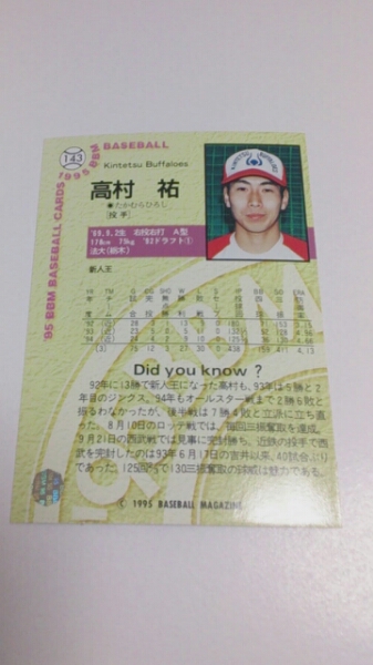 ゴールドサイン!近鉄バファローズ高村祐1995BBM143東北楽天ゴールデンイーグルス |