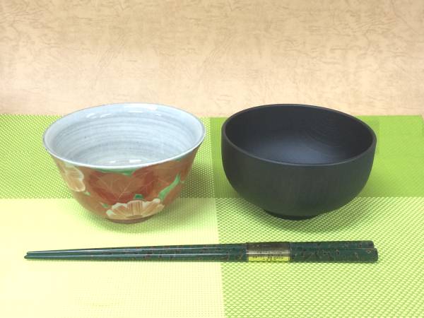 • 3枚目の写真は大きさの目安にセットしてみました。出品対象商品は汁椀です。