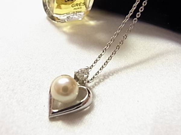 ★ハートの形の上に可愛い貝パール ジルコニア付ネックレス
