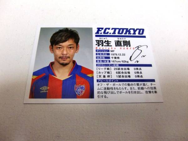 〇2016FC東京配布カード 羽生直剛 ヴェンフォーレ甲府 ジェフ千葉