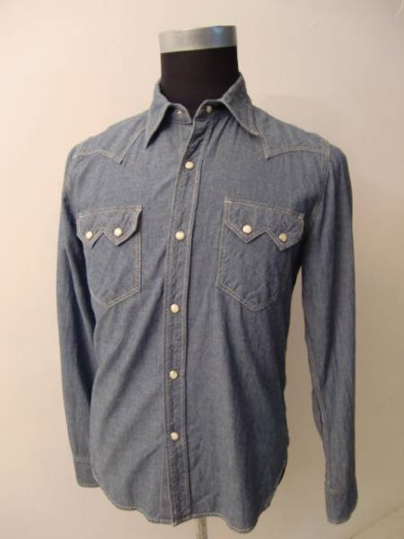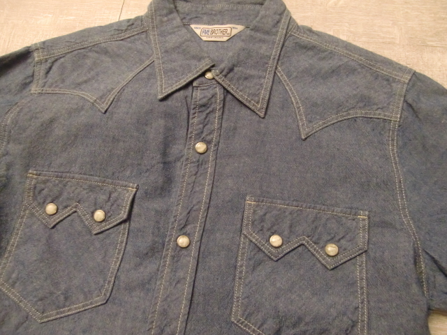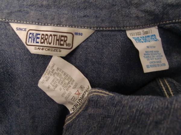 送料無料 70’s レプリカ DEADSTOCK 新品展示品 FIVE BROTHER シャンブレー デニム シャツ S ワーク ファイブ ブラザーズ VINTAGE 旧タグ