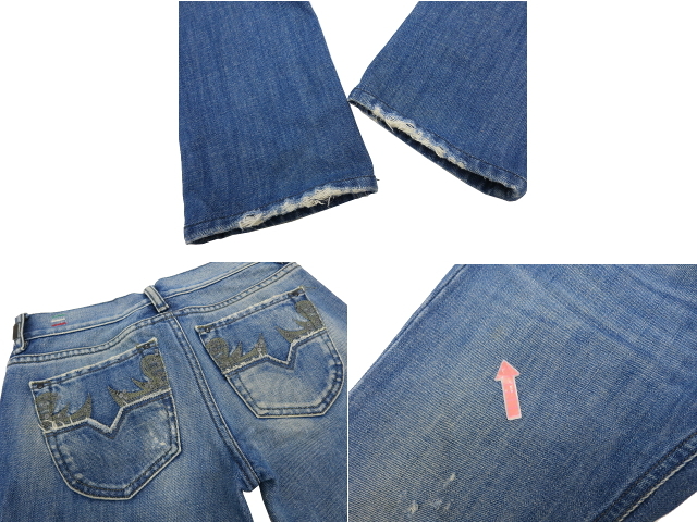 ディーゼルらしいハードな加工&刺繍(スパンコール付き)がされています。