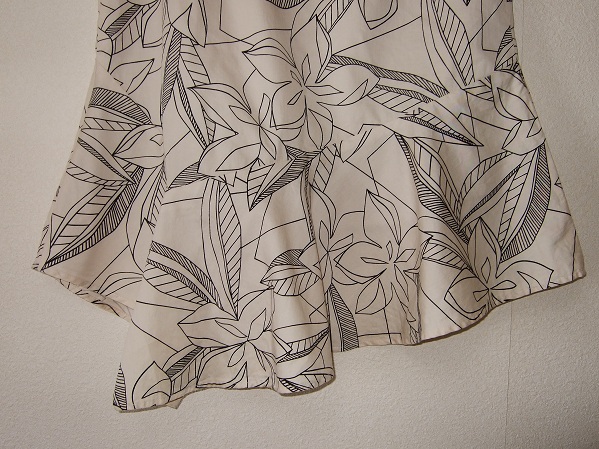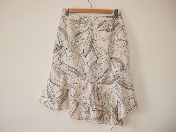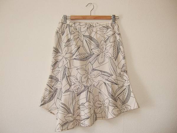 ベージュ地に大きな花柄が華やかな、たっぷりドレープのとても美しいスカートです。