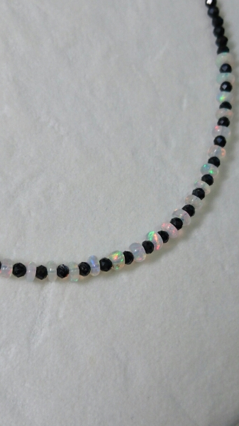 このネックレスの特徴は何と言っても、オパールとブラックスピネルの組み合わせにあります。