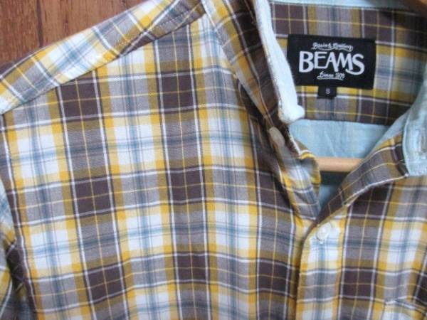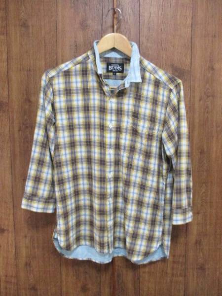 ☆BEAMS/ビームス 襟ワイヤー チェック柄 シャツ 7分袖/メンズ/S