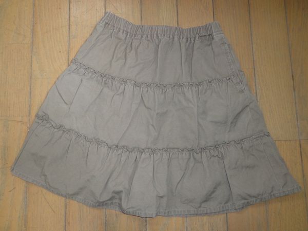 エルELLE★ウエスト総ゴム履き易いカーキ色フリルスカート★120