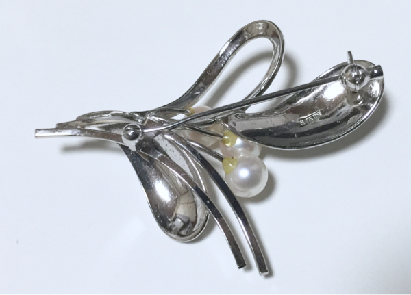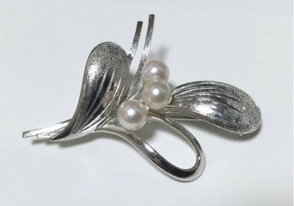 ★天然パール 3粒 純銀シルバー アンティーク ブローチ★真珠
