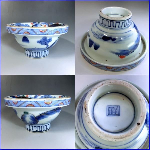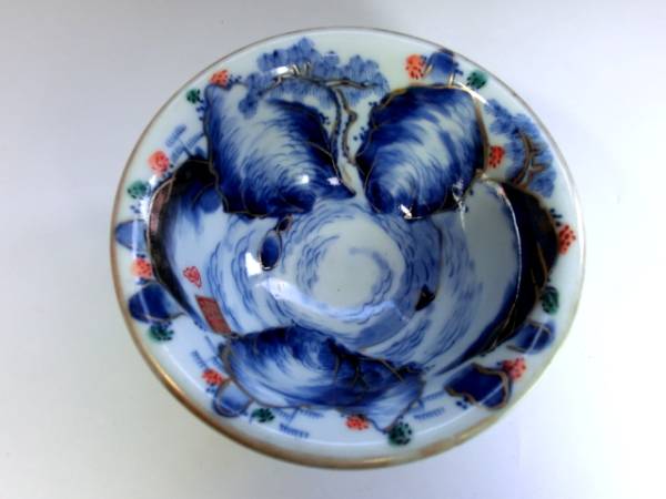 杯洗■古い染付鉢 伊万里 山水 酒器 時代物 骨董品■