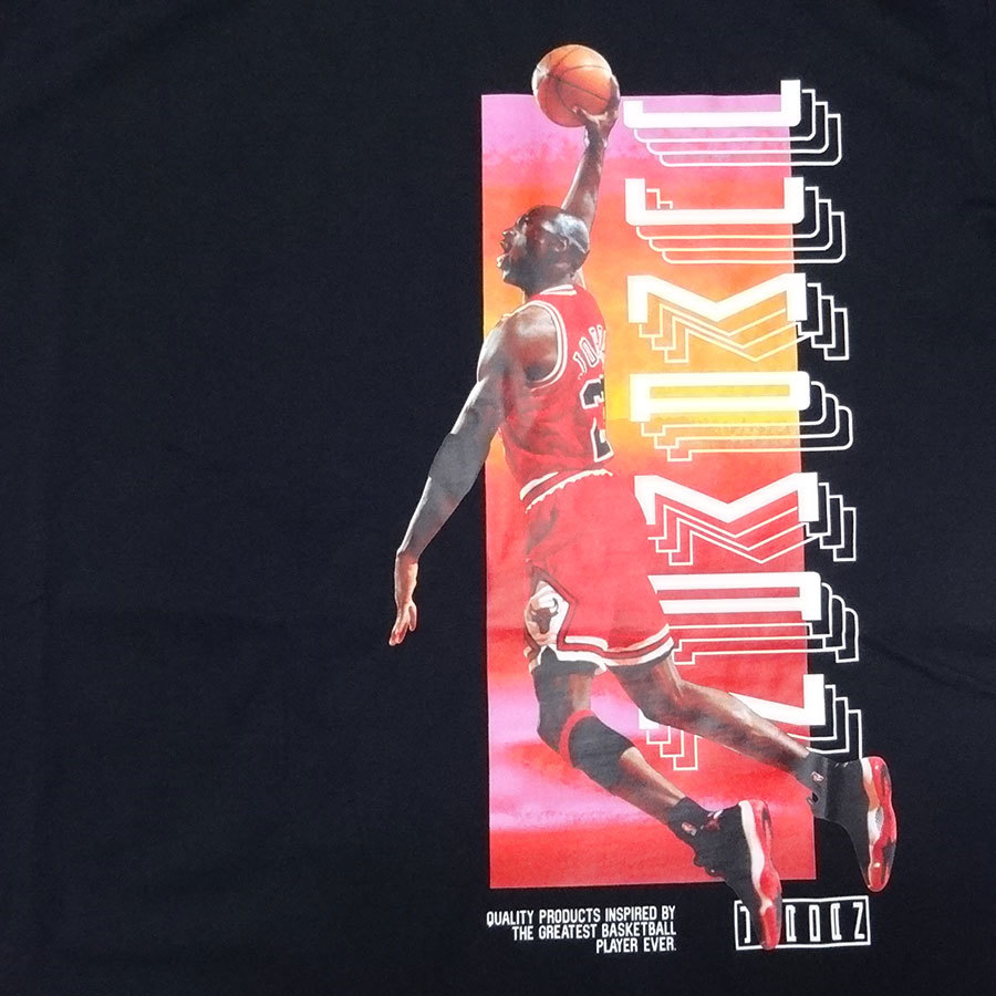 ジョーダンの躍動感あるプリントが特徴的なTシャツです。