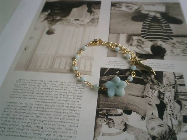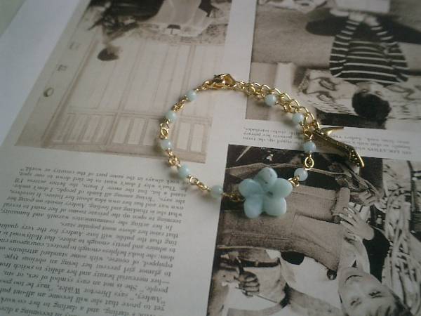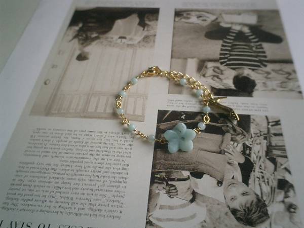 物憂げな春色・・シリーズです♪可憐な水色のアマゾナイトのブレスレットです♪丸玉やお花のブルーグレーのアマゾナイトがロマンチックな表情です♪丸玉は4ミリ、お花は15ミリ位です♪♪長さは全長23センチ位で調節自由です♪♪お揃いのネックレスやイヤリングも出品しています♪シンプルで飽きのこないいつまでも着けられるデザインを考えて作りました!ハンドメイドをご理解頂いてノークレーム、ノーリターンでお願いします