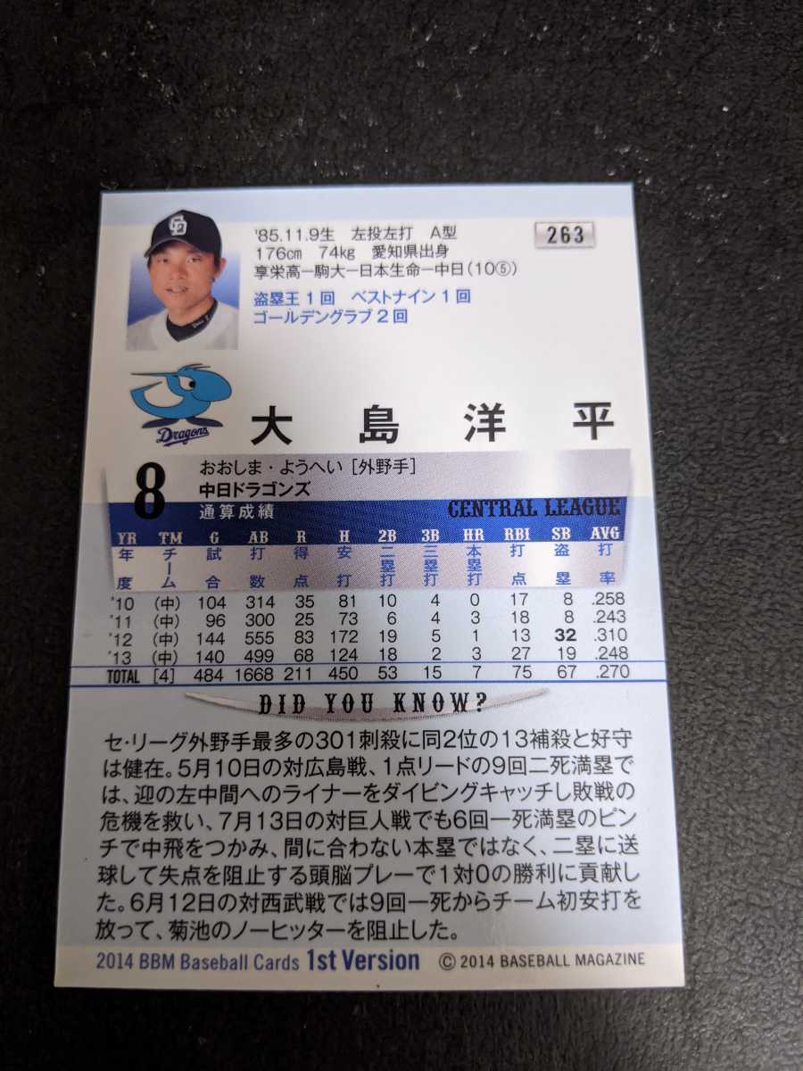 即決★BBM2014 中日ドラゴンズ 大島洋平