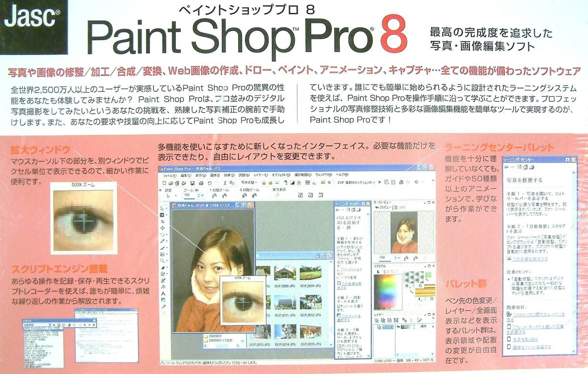 JASC Paint Shop Pro 8 (JAN:4997587152337)の未開封品です。 詳細画像
