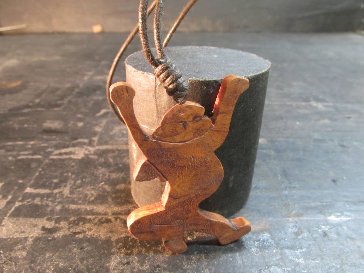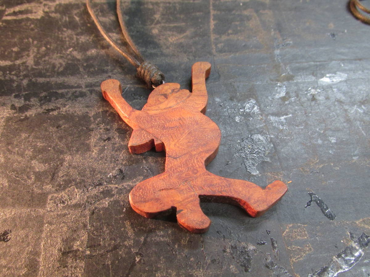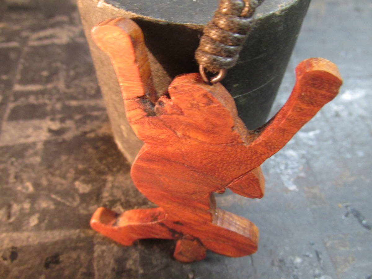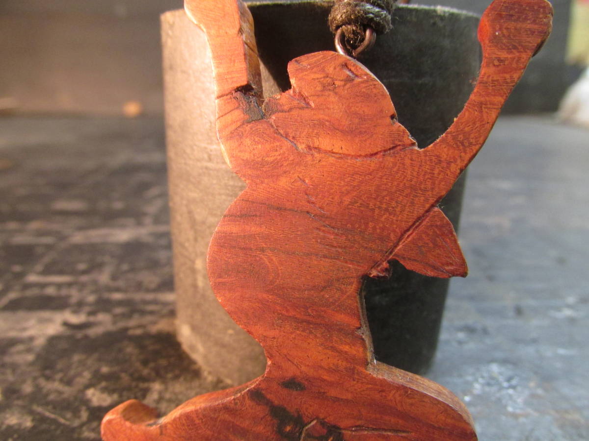 花梨瘤オイルフィニッシュ京都高台寺鳥獣戯画「大きな伸びをするうさぎ」彫刻ペンダント