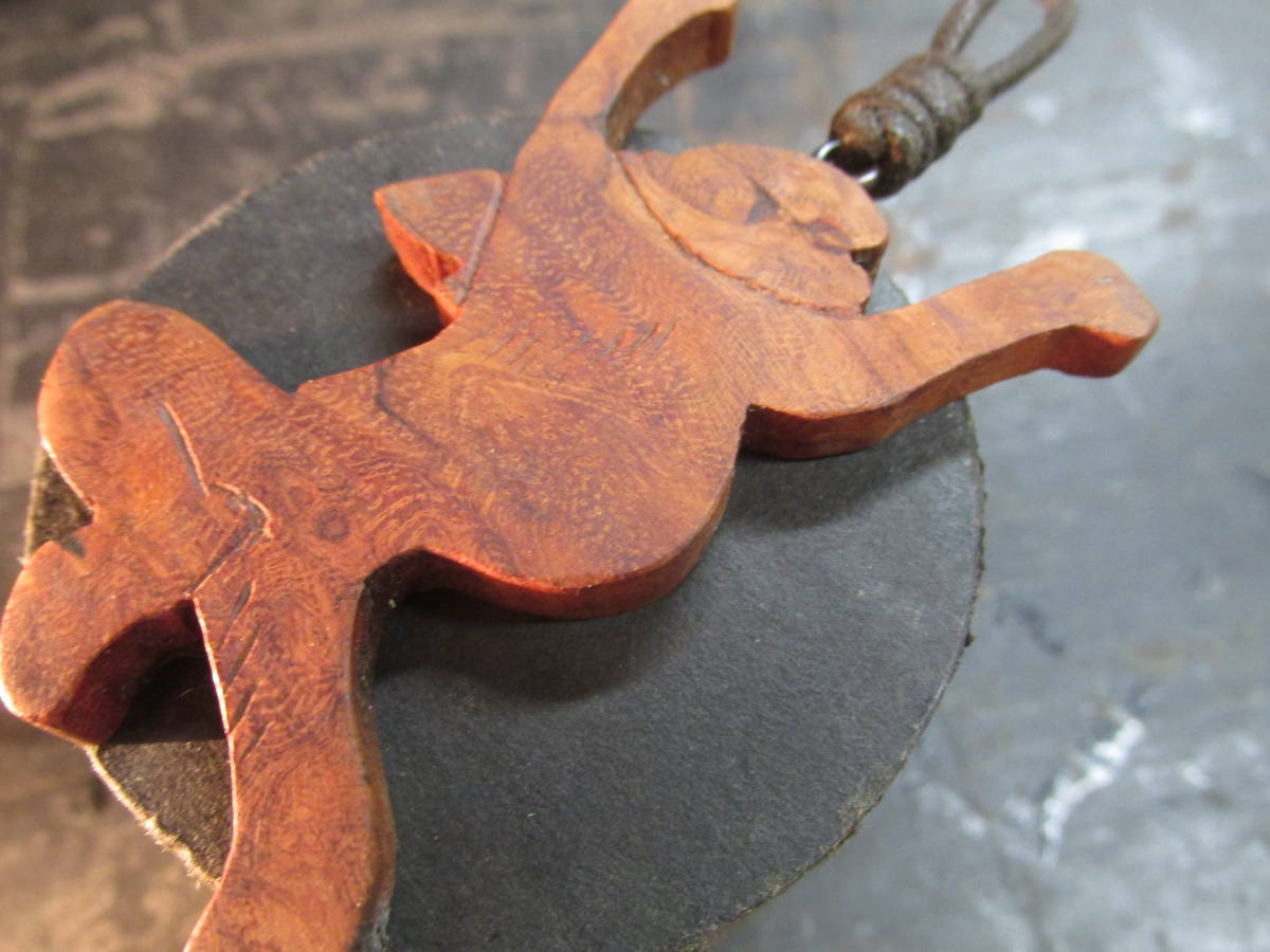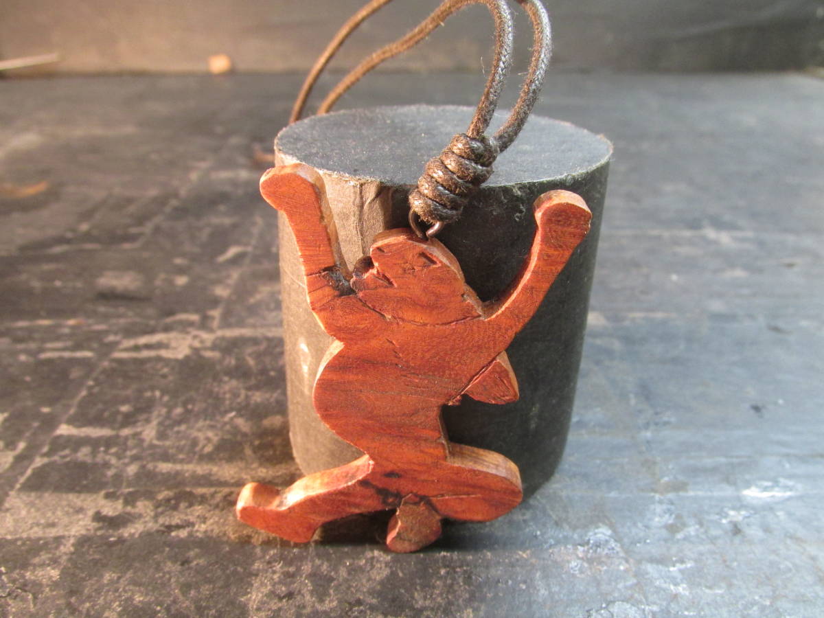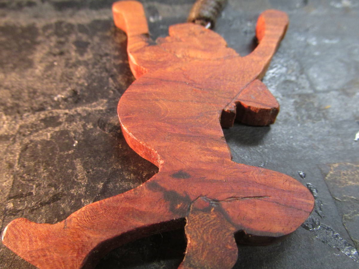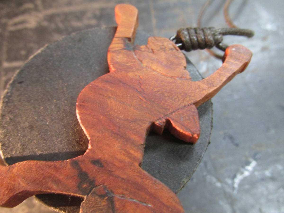 花梨瘤オイルフィニッシュ京都高台寺鳥獣戯画「大きな伸びをするうさぎ」彫刻ペンダント